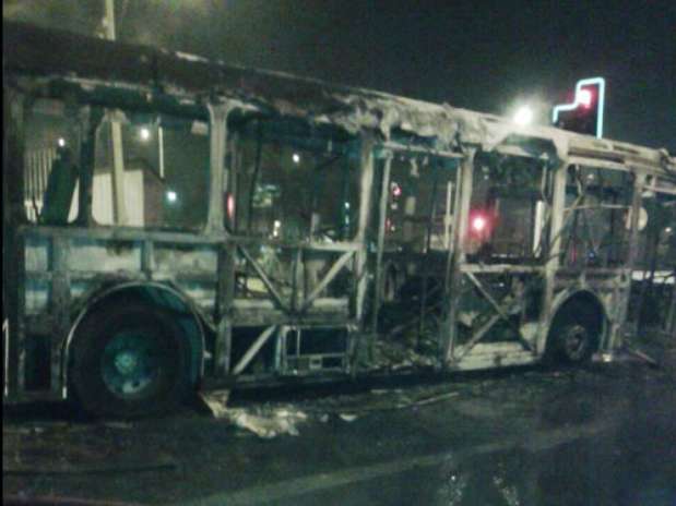 Carabineros indaga ataques con artefactos explosivos a buses del Transantiago, en el que uno de ellos resultó completamente quemado .