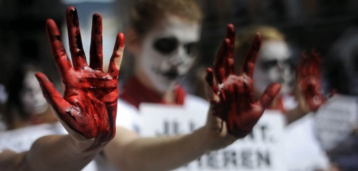 Se trata de una manifestación encabezada por las ONGs de Personas por el Trato Ético de los Animales (PETA, por sus siglas en inglés) y AnimaNaturalis, la cual fue llevada a cabo durante la realización del festival de San Fermín.